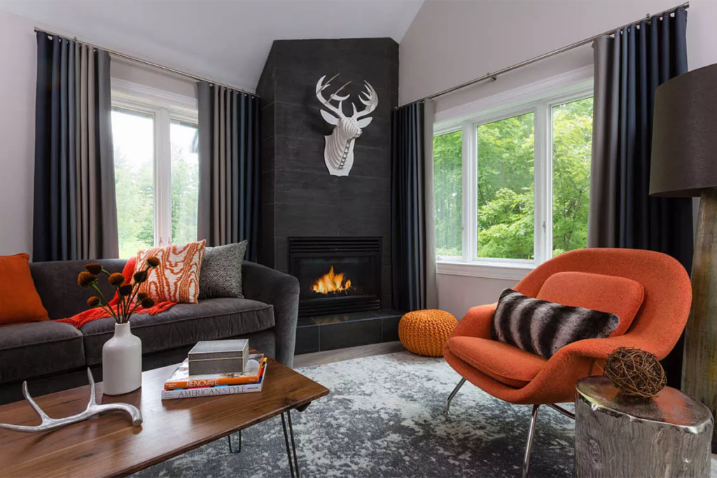 A modern retreat in scenic Stowe with a seasonal outdoor pool and spacious guest lounge.